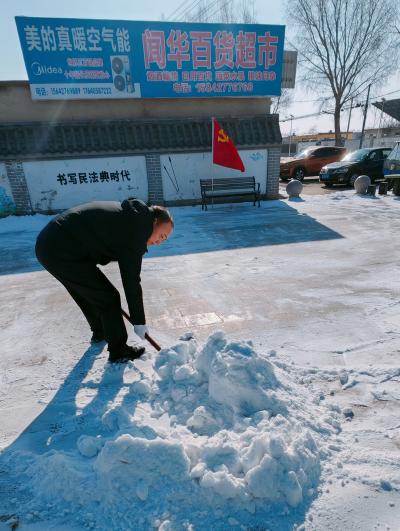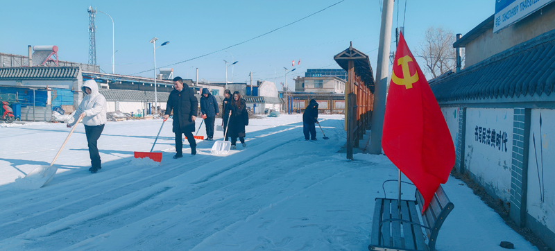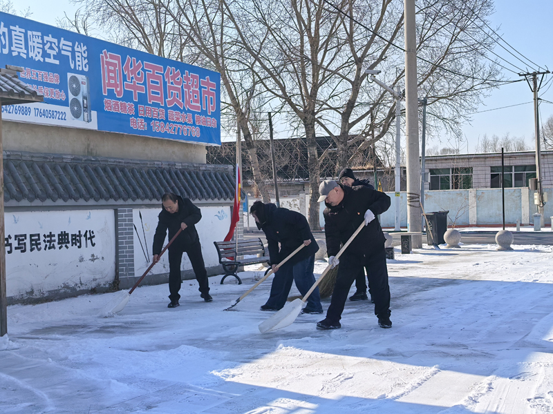 活动中,党员们热情高涨、分工协作,挥舞铁锹、扫帚等工具,对路口积雪、结冰路面进行全面清理。大家不畏严寒、干劲十足,充分发扬不怕苦、不怕累的奉献精神,经过共同努力,道路恢复整洁畅通,保障了村民出行安全。
